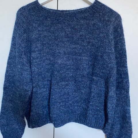 Hjemmestrikket Flamingo genser dame blågrønn alpakkaull størrelse S