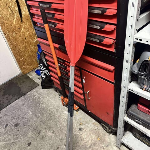 NRS Paddle Float i gul farge. Padleflåten festes til åren for å gi ekstra oppdrift ved egenredning fra kajakk. Den har refleksdetaljer for bedre synlighet og ventil for oppblåsing. Egnet som sikkerhetsutstyr for kajakkpadling. Må hentes.