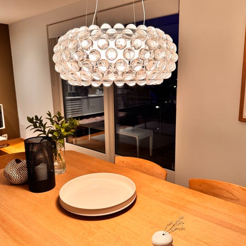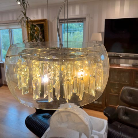 Foscarini Caboche lysekrone fra 2012 selges. Det følger med nye kuler og stenger, da noen er knekt. Det er best å montere disse da den er hengt opp. Åpen for bud.