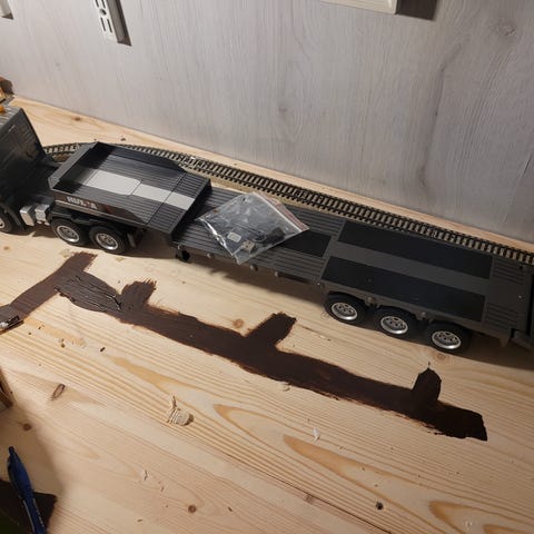 Fint mercedes 6x6 med servonaut og lesu understell,selges komplett med radio og batteri. Det er hydraulisk tipp på bil og henger.