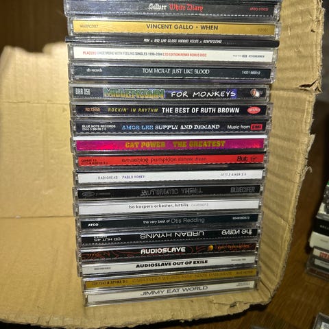 CD-samling med ulike artister og album. Bildene viser blant annet Anastacia – Freak of Nature, P. Diddy & The Family – No Way Out, Fred Frith – Gravity, Die Aeronauten og en samling klassiske suiter. Formatet er standard CD-plater i plastcover. Passer for deg som ønsker et variert utvalg musikk i forskjellige sjangre som pop, hiphop, eksperimentell musikk og klassisk.