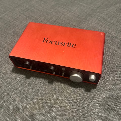 Selger min Focusrite Scarlett 2i2 (2nd Gen), pent brukt og i fullgod stand.