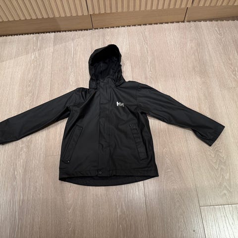 Pent brukt regnjakke fra Helly Hansen. Noe blass i fargen. Str 5år