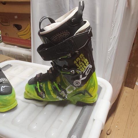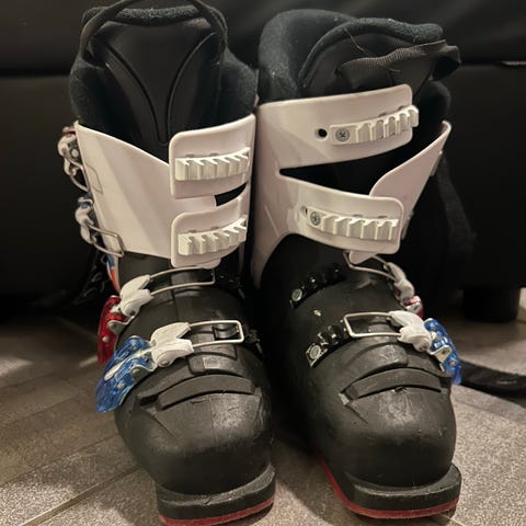 Alpina Discovery alpinstøvler i størrelse 270 (EU 42, UK 8, US 8,5). Modellen er svart med sølvfargede spenner. Støvlene har fire justerbare spenner og powerstrap øverst for bedre tilpasning rundt leggen. Innerstøvelen er polstret for komfort og støtte. Passer til bruk i alpinbakke med standard alpinbindinger.