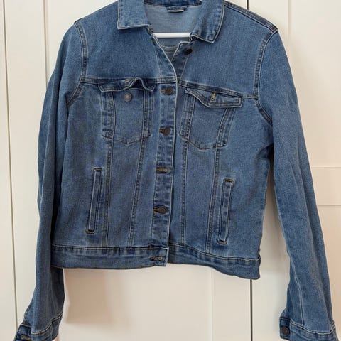 Vero Moda dongerijakke for dame i størrelse S. Jakken er svart og laget i denim. Klassisk modell med krage, knappelukking foran og brystlommer med klaff og knapp. Passer som lett ytterjakke eller som lag over andre plagg i hverdagen.