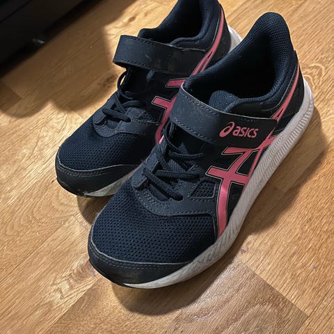 Modellen er unisex og har blå overdel med rosa detaljer og lisser. Skoene har syntetisk/tekstil overdel med pustende meshfelter og hvit såle i gummi/skum for demping og grep.