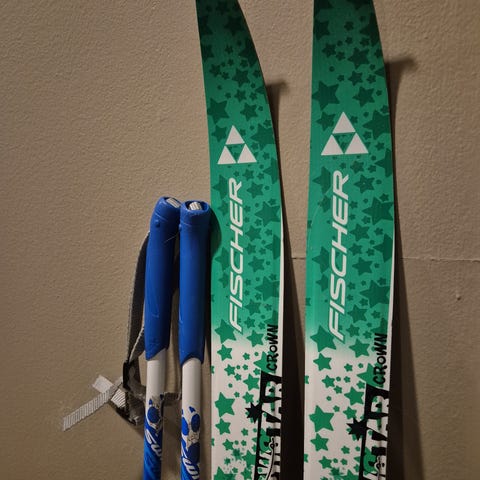 Fischer langrennski for junior med bindinger i svart og gul farge. Lengde 168 cm. Skiene har integrerte bindinger med justerbar mekanisme. Undersiden har smørelomme og såle tilpasset klassisk langrenn. På bildene følger det også med et par langrennsstaver, lengde 135. Egnet til klassisk langrenn på preparerte løyper.