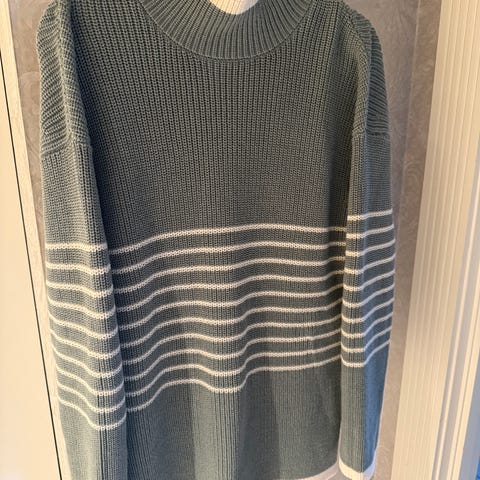 Fin og supermyk basic genser fra det danske kvalitetsmerket Soya Concept. Ubrukt og helt som ny. Størrelsen er en XS, men vil si den er en S. Vil fortsatt ha litt oversized passform i S, slik den skal ha. Fargen er en blanding mellom grå og dus grønn. Liten splitt nede.