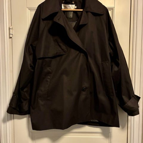 Svart jakke med fine detaljer. Den er litt lenger bak enn fremme. Kjøpt på Emil 1 år siden ca. Brukt noen få ganger.