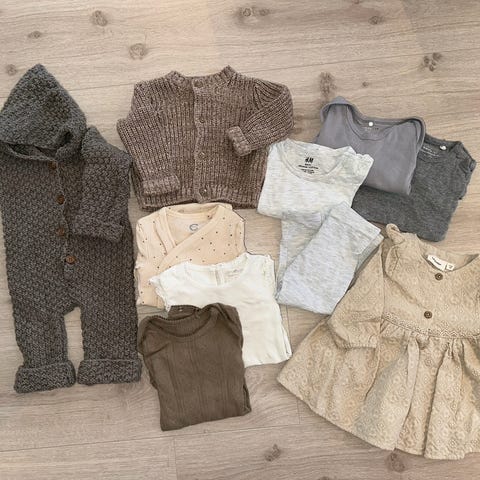 Nydelig klespakke med hjemmestrikk i ull ca str 74-86. Ingen hull eller flekker. Unisex.