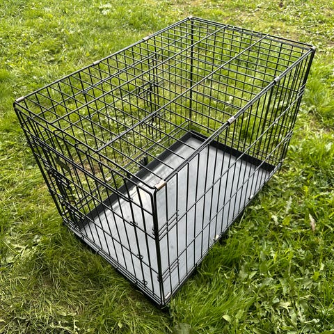Instinct sammenleggbar hundebur i svart metall. Buret har gittervegger og bunnbrett i plast som kan tas ut for enkel rengjøring. Høyden er målt til rundt 60 cm. Buret kan foldes flatt og har bærehåndtak for enklere transport og oppbevaring. Egnet som liggeplass eller transportbur for hund, avhengig av hundens størrelse og behov. Buret har flere festepunkter og låser i metall for å holde døren sikkert lukket.