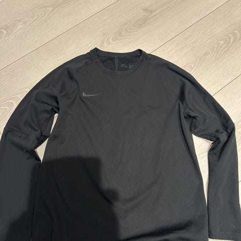 Nike fotballgenser i størrelse XL unisex. Genseren er rød med svarte detaljer og har lang arm. Den har kort glidelås i halsen og liten Nike-logo på brystet. Egner seg til fotball og annen trening, samt som overtrekk eller oppvarmingsgenser. Ny/ ikke brukt