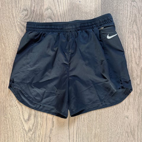 Nike Dri-Fit løpeshorts for dame i størrelse M. Shortsen er blå og laget i polyester. Modellen har innershorts og elastisk linning med snøring. Egnet til løping, trening og annen fysisk aktivitet.