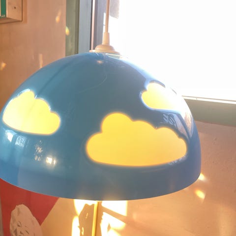 IKEA taklampe i hvit farge. Kulen formet som en rund skjerm med bevegelige lameller som slipper lys ut mellom sprekkene. Lampen har ledning med takfeste og er egnet som hovedbelysning eller stemningsbelysning i et rom. Passer i stue, soverom eller andre oppholdsrom der man ønsker en dekorativ taklampe. Også kjent som starwars lampen.