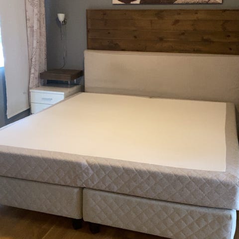 Selger en pent brukt dobbeltseng fra Svane kontinental, størrelse 180 x 200 cm. Senga godt i varetatt og uten feil, Det er 4 stk madrasser på sengen, og 2 stk av dem er vendbare, den ene sida er mykere og andre sida er fastere.