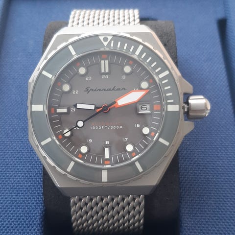 Følger med boks, ekstra ledd, original lenke, uoriginal mesh, 3 reimer (sort, blå og hvit), 3 bezel (sort/blå, sølv og mørkeblå) og stemplet garantikort.