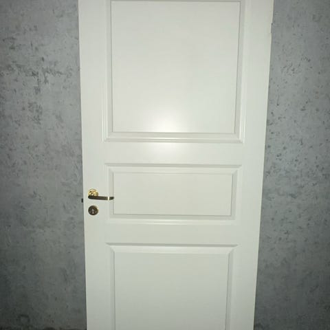 Innerdør hvit med profilert fylling og dørhåndtak