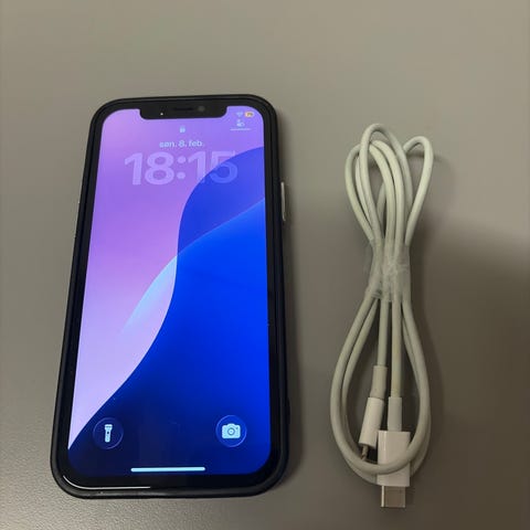 Apple iPhone 12 Pro Max mobiltelefon med 128 GB lagringsplass. Modellen har stor skjerm med frontkamera i øvre kant og trippelt kameraoppsett på baksiden. Enheten har flat kantdesign og glass på for- og bakside med metallramme. Lagringskapasiteten på 128 GB gir plass til apper, bilder, video og andre filer. Egnet som hovedtelefon til daglig bruk, foto, video og apper. 78 prosent batteri. Pent brukt.