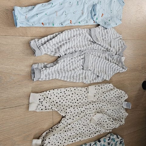 Pakke med 3 stk deilige, myke pysjer. To stk like fra Gullkorn (tror modellen heter Vennen), og en fra Reflex, alle i størrelse 62.