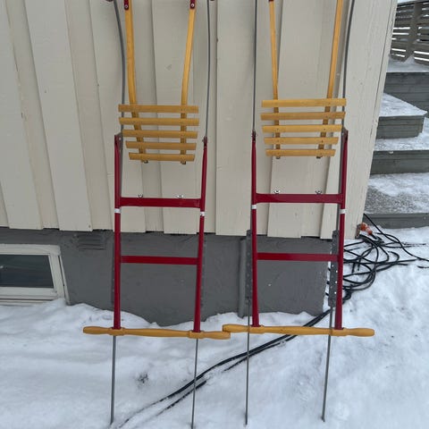 Tarzan sparkstøtting i kombinasjon av tre og metall.