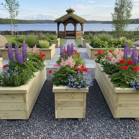 Blomsterkasser og opphøyde blomsterbed fra Tveit.