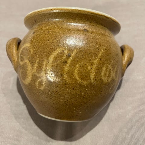 Veldig fin krukke i keramikk merket med «På lingonröda tuvor». Mønster med røde bær. Høyde 9 cm, diameter 10,5 cm. Krukken er i god stand. Selges for 300,-