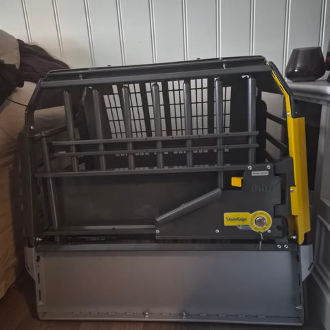 Kollisjonssikret splintrefritt hundebur med deformasjonssone.