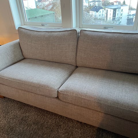 Sofaen har en madrass i skuff.