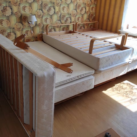 IKEA enkeltseng med madrass. Sengen har treramme med ribbebunn og en enkel madrass oppå rammemadrass med rutete trekk. Passer som enkeltseng på soverom, barnerom eller gjesterom. Egnet for én person. Har 2 om ønskelig for å få dobbel seng av den, da kan overmadrass følge med. Er 75 cm bredde maskiner. Pris er pr stk.