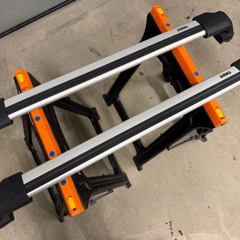 Selger pent brukt Thule WingBar Evo takstativ. Disse har stått på Audi A3 e-tron og VW Passat Alltrack. Nypris hos Thansen er rundt 4500 kr.