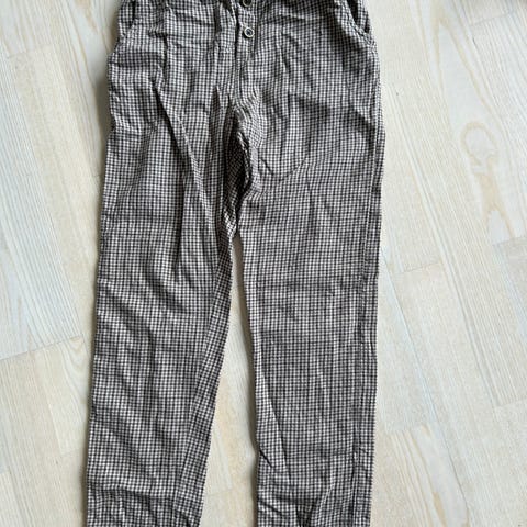 Newbie sett med kortermet skjorte (134/140) og shorts (140) til gutt. Farge beige med stripemønster. Skjorten har krage, knappelukking foran og brystlomme. Shortsen har strikk i livet, sidelommer og baklomme. Ingen hull eller flekker. Svært pent brukt!