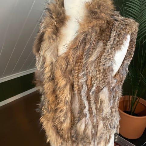 Pelsvest fashion vest av kanin/ murmeldyr og bomull