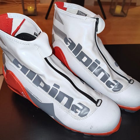Alpina RCL langrennsstøvler kombi. Ekstra støtte og stabilitet for klassisk og skøyting. Brukt noen få ganger før de ble for små. Nesten ikke synlig brukt. Ytterlokk med glidelås dekker tradisjonell snøring og beskytter mot snø og fukt.