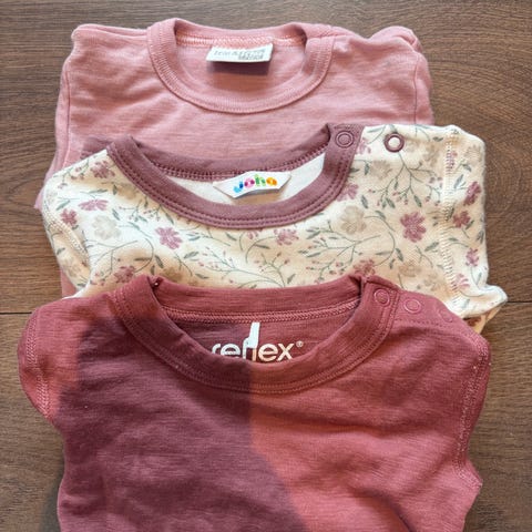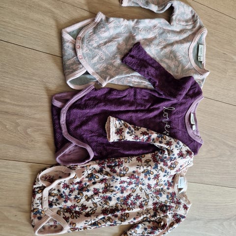Body fra Reflex og Lindex i størrelse 80. Langermet body i rosa nyanser med mønster. Materiale ser ut til å være myk bomullsjersey