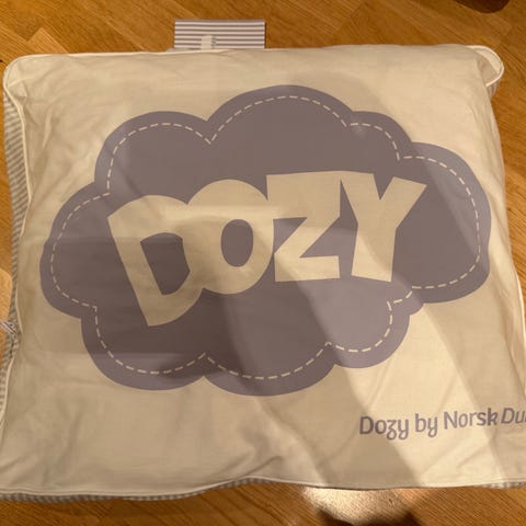 Dozy by Norsk Dun dundyne i størrelse 65 x 80. Lett dyne som passer til vår, sommer og høst. Passer også perfekt i barnevogn (liggedel). Ubrukt, kommer i orginalt trekk. Nypris 629,-
