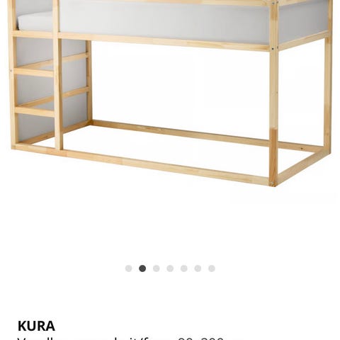 IKEA loftseng for barn i tre med hvite sidepaneler. Sengen har integrert stige og sengebunn med ribber i tre. Under sengen er det åpen plass som kan brukes til lek, oppbevaring eller ekstra madrass på gulvet. Passer til standard madrass i enkeltseng-størrelse (ikke inkludert). Designet for barnerom med behov for å utnytte gulvplassen under soveplassen. Prisen kan diskuteres.