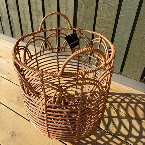 Tre oppbevaringskurver i ulike størrelser fra kremmerhuset selges samlet. De er nesten ikke brukt, men har noen merker her og der, se bilder. I bunnen har de noe som ligner på lim i skjøten, noen merker og en er litt mer buet slik at den vipper ved berøring.