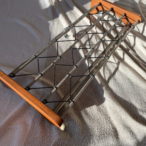Retro hattehylle i teak, i god stand. Selges uten fester, men kan nok monteres helt fint uten.