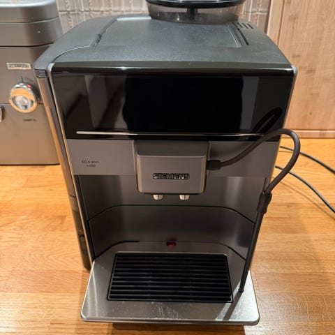 Siemens EQ.6 Plus S100 helautomatisk kaffemaskin i sølvfarge.
