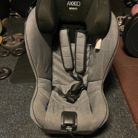 Selger et Axkid Minikid bilsete i grått. Produksjonsdato: 04.09.2019.