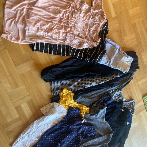 Klespakke med lite og fint brukte gravidklede i M. Alle kleda vart kjøpt hausten 2025 og har ingen feil eller merke.