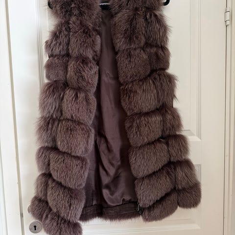 & Other Stories kåpe i brun pels for dame i størrelse M. Kåpen har klassisk, rett fasong med lengde ned mot knærne. Den har bred krage og lange ermer. Innsiden er helfôret for økt komfort. Passer som yttertøy på kjølige dager og kan brukes både til hverdags og mer formelle anledninger.