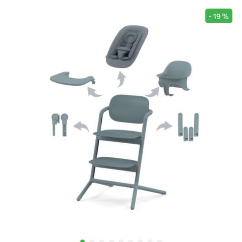 Selger en pent brukt Cybex Lemo 3in1 stol i grønn farge med grå pute. Stolen er stabil, praktisk og i god stand.