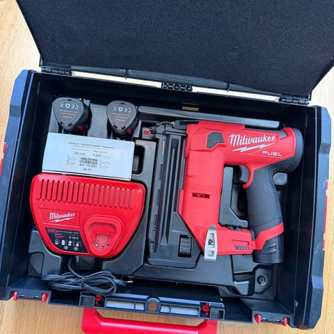 1 stk 4 ah batteri, og 1 stk 2 ah følger med. I tillegg til lader og packout-koffert.