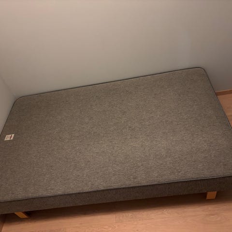 Seng selges 120x200 godt brukt men fortsatt ok og sove i. Har overmadrass til den. Anbefaler og kjøpe nye me tanke på hygiene