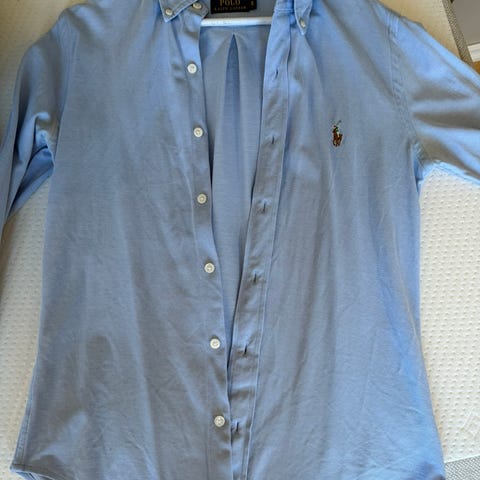 Polo Ralph Lauren skjorte for dame i størrelse S. Skjorten er blå og laget av bomull. Klassisk modell med krage, lange ermer og knepping i front. Diskré logo brodert på brystet. Egnet til både hverdags- og penbruk.