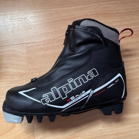 Meget pent brukte Alpina T5 plus skiskor selges. Brukt på 2-3 turer