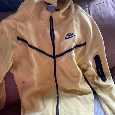 Nike FFF hettejakke for unisex i størrelse M. Jakken er marineblå med kontrastfargede glidelåser og detaljer. Den har hel glidelås foran, hette og to sidelommer med glidelås. På brystet er det brodert FFF-logo og Nike-logo. Egnet som fritidsjakke eller lett treningsjakke.