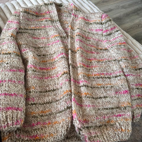 Selger en strikket cardigan for dame i størrelse M/L. Den er ikke mye brukt