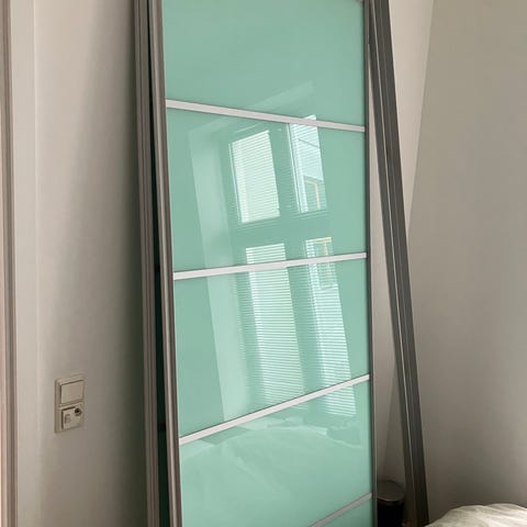 To stk skyvedører med medfølgende skinne til gulv og tak.